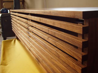 これはAV機器の放熱・リモコン対応を考えた必然のカタチ。おまけに目障りな取手も兼ねる事が出来、出しゃばらず・奥ゆかしい佇まいが私好みです。