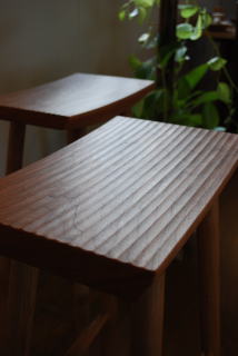 共に座面には丸鉋で波状の滑り止め加工を施しています。これはスツールでは掛け心地に変わりはありませんが、木材の滑らかな感触を楽しんでもらえればと思います。