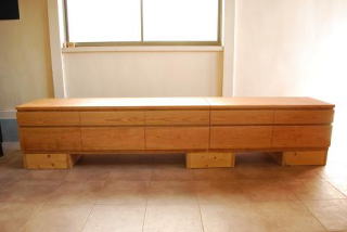 注文主は、築50年の民家をリフォームしたのきっかけに、無垢のTVボードを頼んでくれました。天然素材に囲まれた空間に人工物の家具は似合いませんね。
