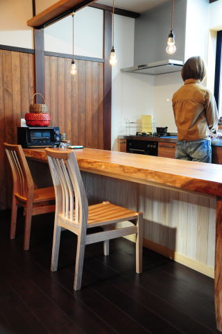 さて、鬼胡桃のダイニングチェアーは7年前に造らせていただいた椅子のリピート品。並べてみると色合いの変化が良く分かります。使い込む程深く変化するのは無垢+オイル仕上げの良いところ。