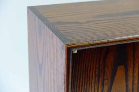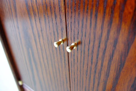 Pヒンジ・つまみは全て真鍮の無垢材から削り出したもの。この厨子に無骨な金物は似合いませんね。