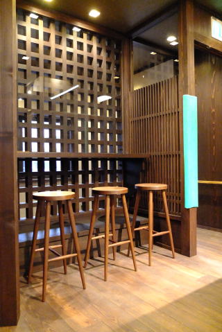 ここは古い金澤町屋を改装した店舗。それに合わせてシンプルで綺麗なカタチを目指してデザインしました。店舗用と云うことで強度も必要です。野暮にならない範囲で部材の太さを吟味しました。