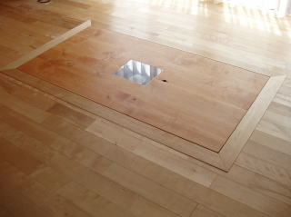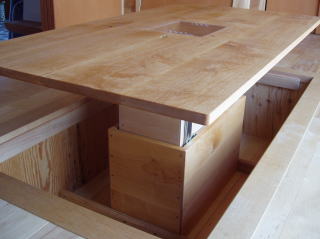 ”一階のリビングに床下収納が有り、ここにワンタッチで上下出来るテーブルを付けたい”との内容。元々ここにはまり込むテーブルが有ったそうですが、上下出来る訳では無く、作業性が悪いため結局使わなくなってしまったとの事でした。