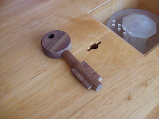 写真の鍵状のものが、ロックを解除するハンドル。鍵を抜いておけば常にロックされる安全設計です。