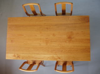 さて、テーブルですが、お客様のイメージはほぼ固まっていましたので、詳細な寸法や材質、機能をお聞きし、後日図面に起こします。また、ギャラリーで椅子をご覧頂き、合わせて4脚のオーダーを頂きました。