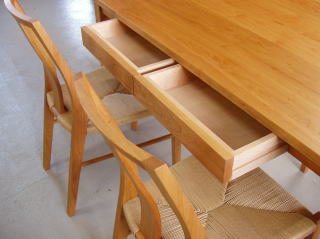 毎度の事ながら、引き出しは幕板と面一に仕込み、普段は引き出しが付いているようには見えません。私のこだわりの一つです。