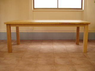 天板を厚く、どっしりとした感じにとご要望されましたので、楢の柾目材を使い天板厚を40mmとしてあります。さすがに重量は重く、テーブルだけで80kg程になり、取り扱いが大変でしたが、がっしりとしたボリューム感が出たと思います。
