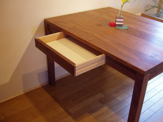 もちろんここで食事をとるのですが、仕事もされるそうで、引き出しを付けてほしいとのご要望。とかくテーブルの上は物を置きっぱなしになりがちですので、お気持ちよく理解できます。