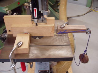 摩擦による影響を避けるため、板の押さえにはローラーを、滑車にはベアリングを付けています。