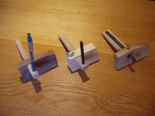中央の物は市販の毛引きと同じ様な構造で鉛筆を取り付けられる様に自作した毛引きです。これはこれで使えますがやはり微調整には手間がかかります。