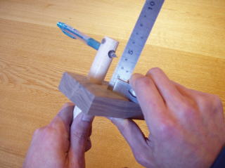 お使いになった方ならばわかると思いますが、スケールと刃を支える為に両手がふさがり、そのままネジを締められない為、刃の方の手を離すのですが、これによって刃の位置がずれてしまうのです。何とも非合理的な道具だとつねずね思っていました。