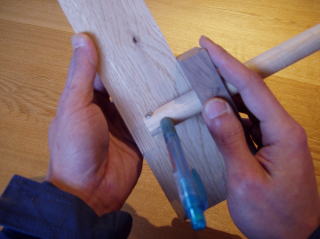 いわゆる鉛筆を使った毛引きです。通常の毛引きももちろん使いますが、私の場合ほぞの長手方向の墨付けはシャープペンシルを使います。その理由は、墨線を残してホゾ加工をすることで、線の幅分をホゾの締め代とする為です(これは通っていた職業訓練校で教わった方法で、0.5mmサイズが広葉樹には丁度良い)。