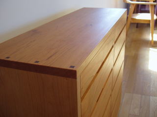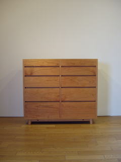 アメリカンブラックチェリーを使った5段式のチェスト。前に同材種でテーブルやソファーをお納めしたお客様よりご依頼を頂き、やはりチェリーを使わせて頂きました。