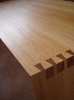 脚と天板の接合には強度を考えて”アリ組み”を用いました。ただ取り付け角が直角では無いため加工が簡単ではありません。鋸を入れる踏ん切りをつけるまでに長い時間がかかりました。