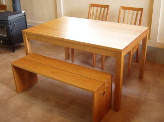 アメリカンブラックチェリーを使ったダイニングテーブル・チェアー・ベンチ。