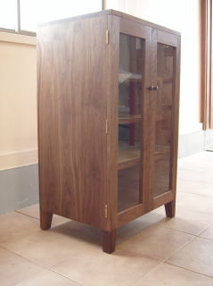 ブラックウォールナット材を使った食器棚。
